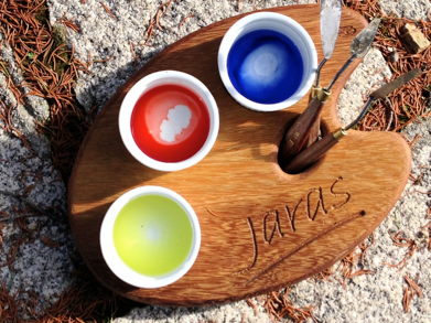Bandeja de aperitivos personalizada, fabricada en madera de Iroko con terminación al aceite natural.